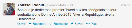 2013, Youssou Ndour a dédié son premier tweet aux Sénégalais en